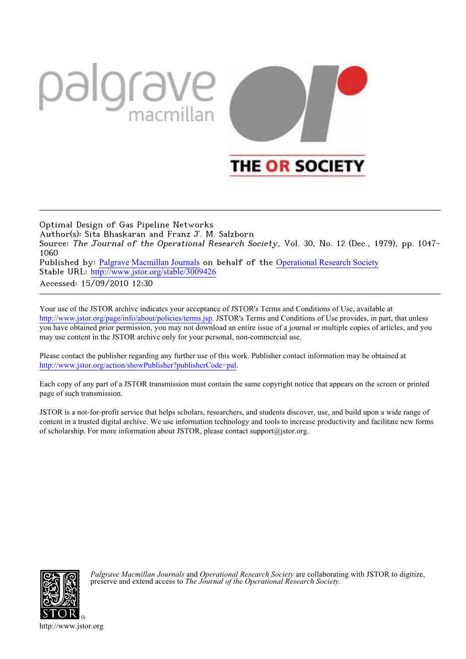 S. Bhaskaran和F.J.M.Salzborn的气体管道网络的最优设计
