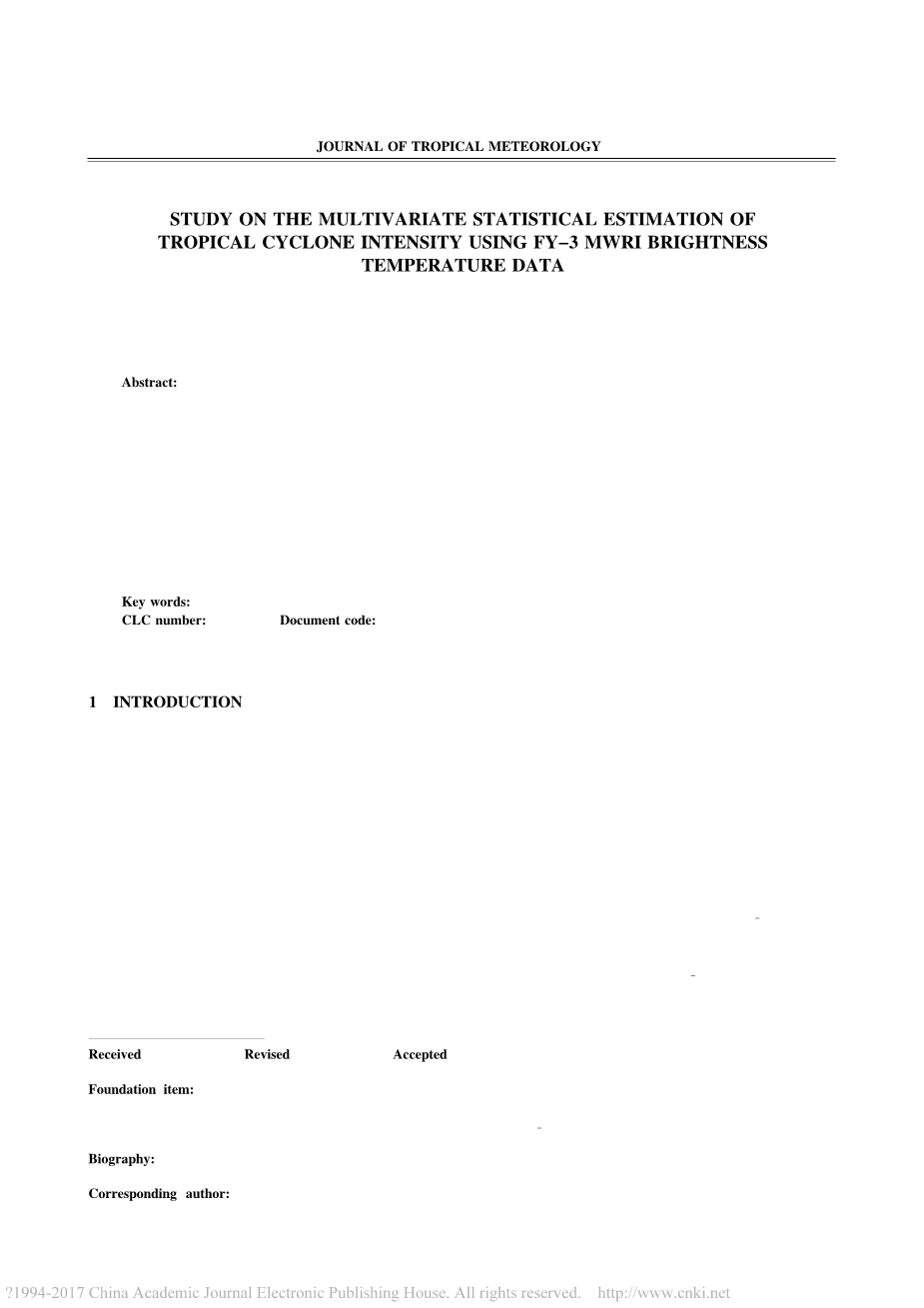 关键字:热带气旋强度;多元统计估计;FY-3;微波成像仪