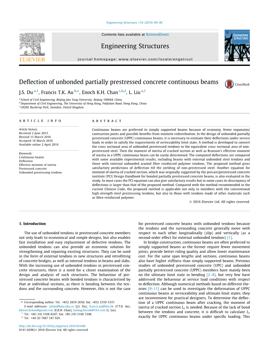 J.S. Du, Francis T.K. Au, Enoch K.H. Chanc, L. Liu