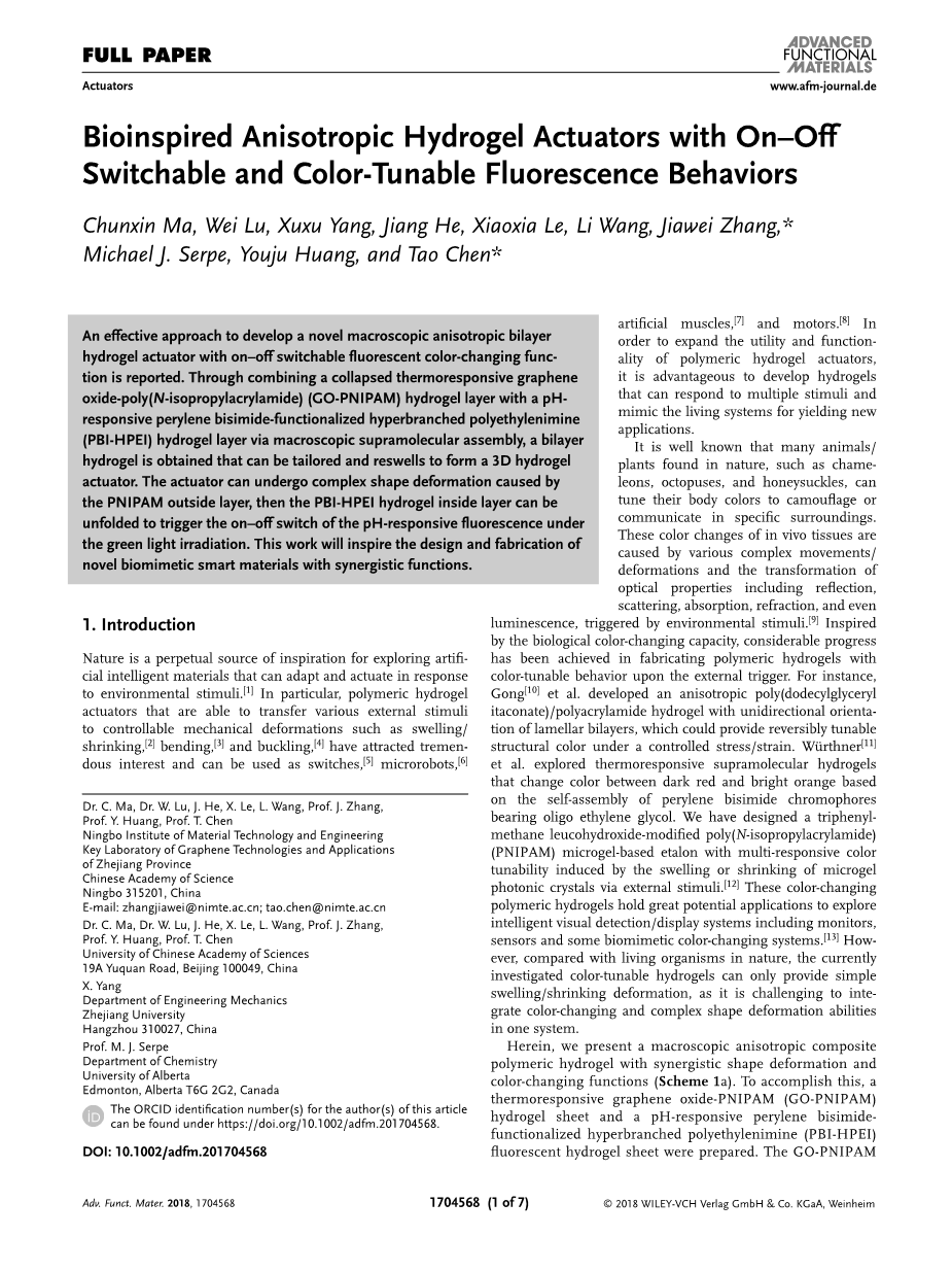 Chunxin Ma, Wei Lu, Xuxu Yang, Jiang He, Xiaoxia Le, Li Wang, Jiawei Zhang,* Michael J. Serpe, Youju Huang, and Tao Chen