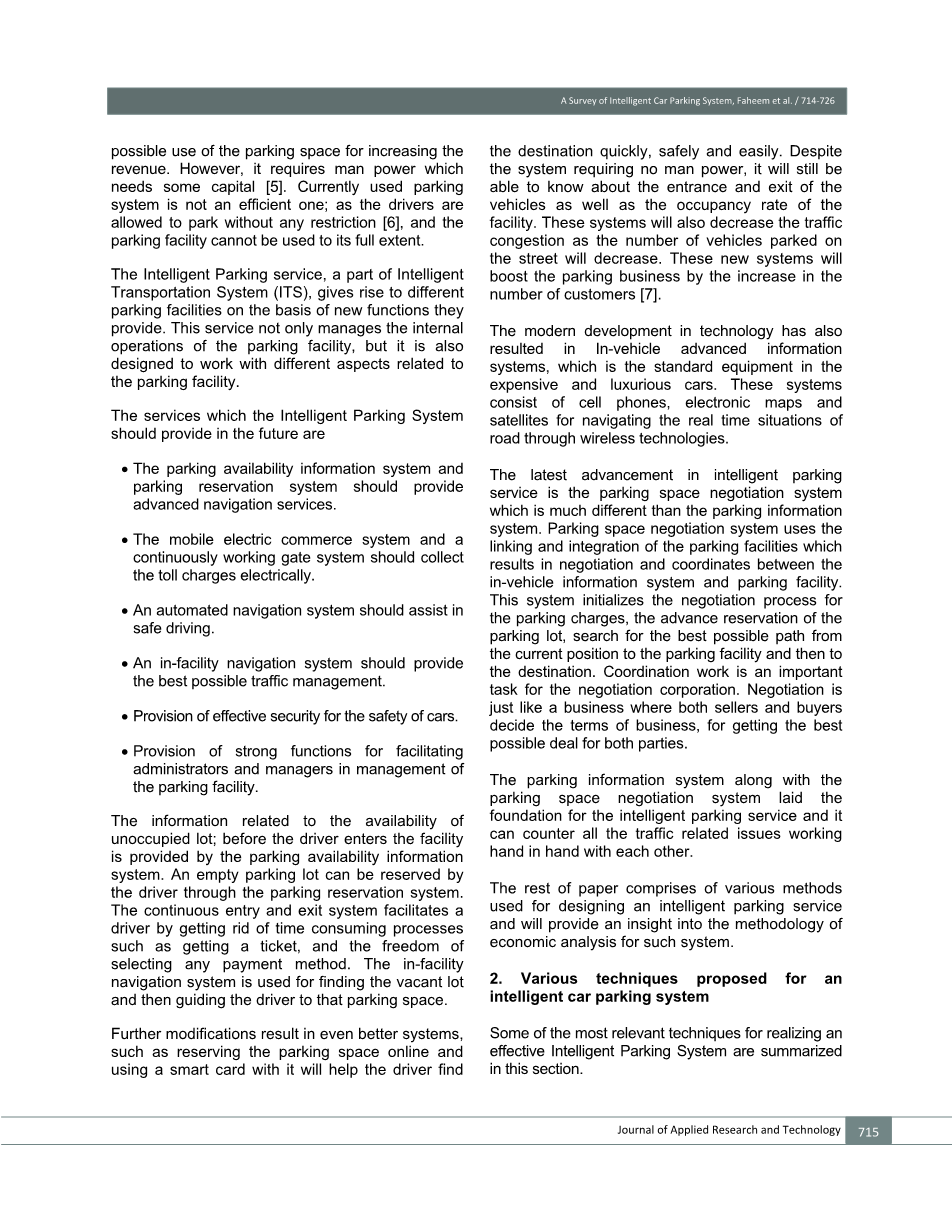 智能停车服务,智能交通系统(ITS)的一部分,在它们提供的新功能的基础上产生不同的停车设施。该服务不仅管理停车设施的内部操作,而且也为与停车设施相关的不同方面工作。