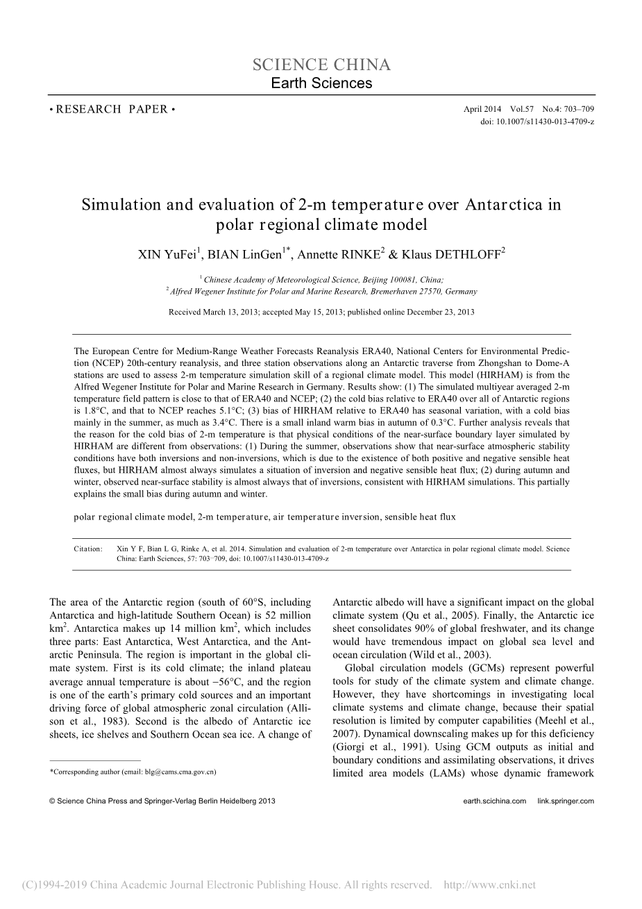 极地区域气候模式下南极上空2米温度的模拟与评价