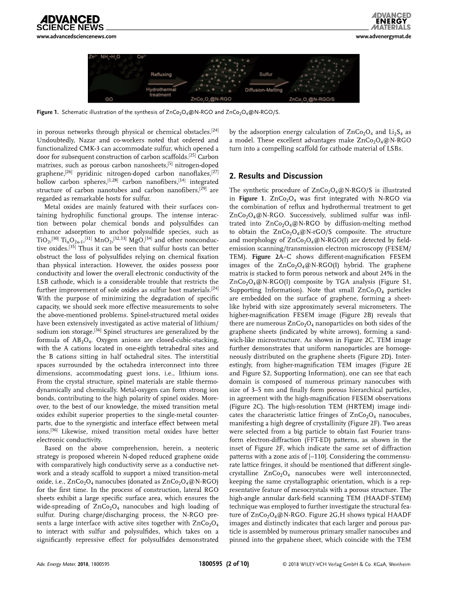 图1. ZnCo2O4@ N-RGO和ZnCo2O4@ N-RGO / S的合成示意图。