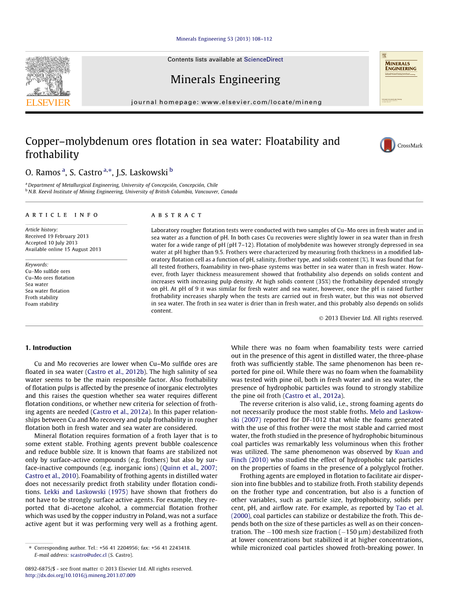 O. Ramos a, S. Castro a, , J.S. Laskowski b智利康塞普西翁大学冶金工程系