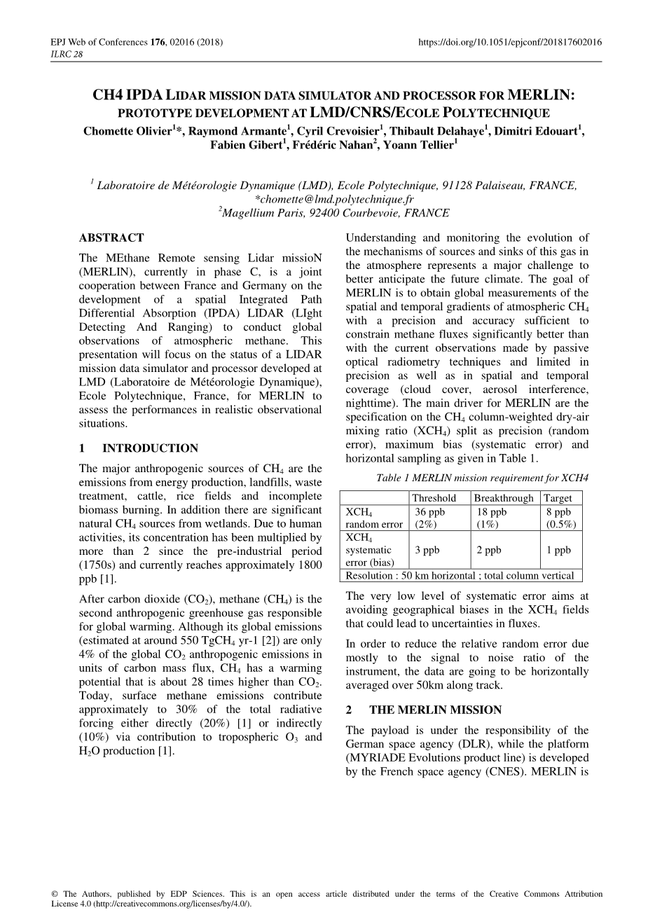 Chomette Olivier11*, Raymond Armante1, Cyril Crevoisier1, Thibault Delahaye1, Dimitri Edouart1, Fabien Gibert1, Freacute;deacute;ric Nahan2, Yoann Tellier1