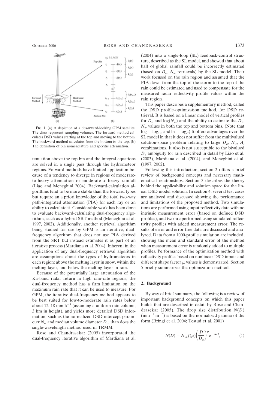 Rose和Chandrasekar(2005)在单循环(SL)反馈控制结构中使用了Mardiana等人(2004)的双频迭代算法,描述为SL模型,并表明SL模型可能错误地估计了大约一半的全球降雨量(基于D0,Nw检索)。他们的工作集中在降雨区域,并假设可以估算从风暴顶部到降雨顶部的PIA,并用于补偿雨区内测得的雷达反射率廓线值。