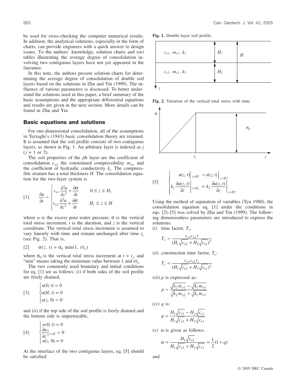 在本文中,作者提出了解决方案图表,用于确定基于朱和尹(1999)的解决方案的双土层的平均固结程度。 讨论了各种参数的影响。为了更好地理解本文中使用的解决方案,对基本假设和适当的微分方程和结果的简要总结在下一节中给出。 更多细节可以在朱和尹的论文那里找到。