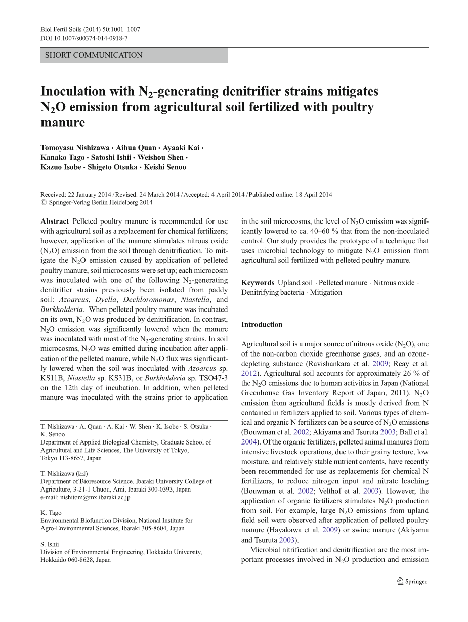 我们以前通过单细胞分离方法从稻田土壤中分离出一些活性反硝化细菌( Tago et al。2011; 西泽等人。