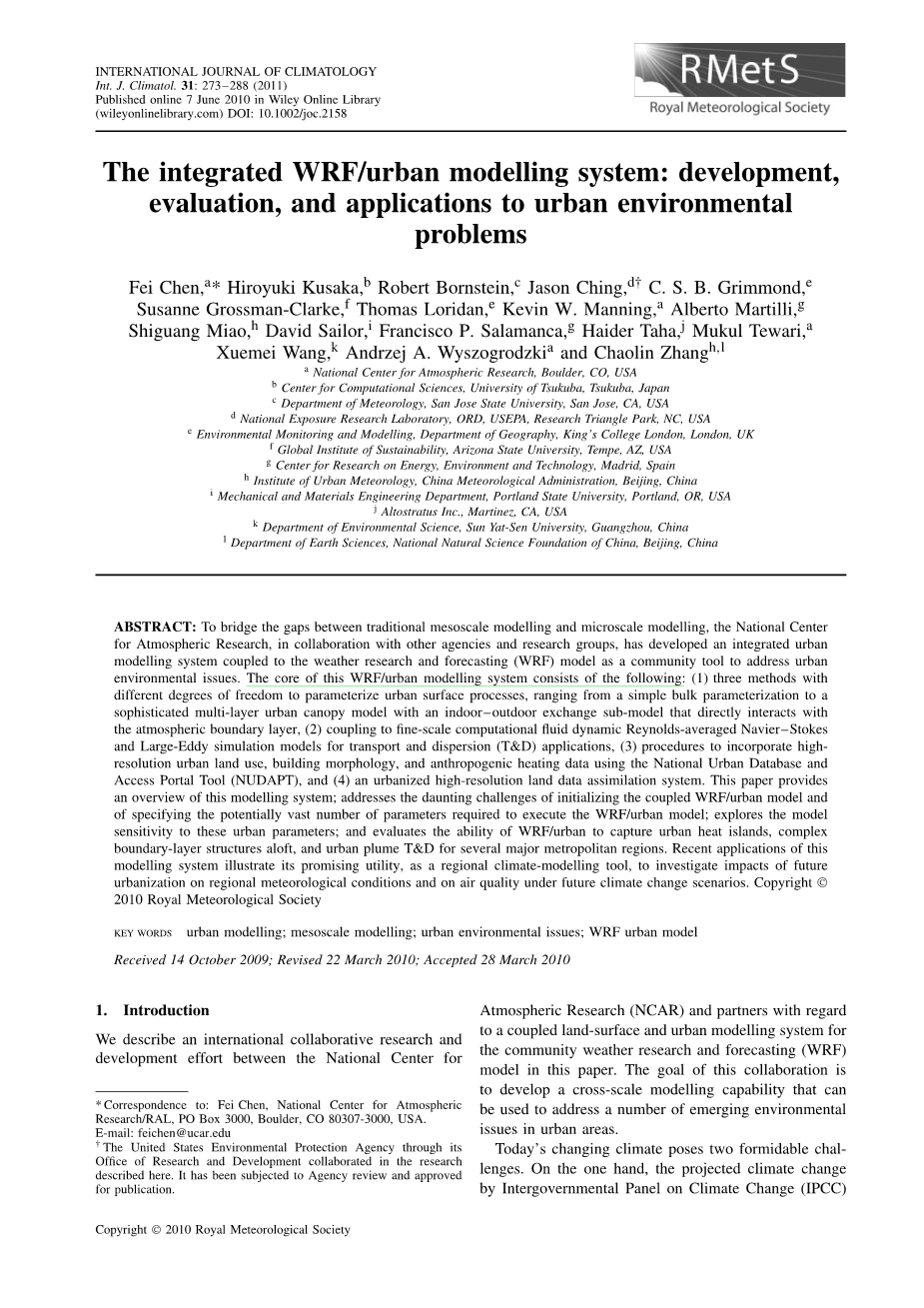 本文描述了一个由NCAR及相关合作组织组成的国际合作项目共同开发的耦合下垫面及城市冠层模型系统的WRF模型。此次合作的目的是为了提高一个跨尺度模型的能力,该模型可用于解决在城市环境区域内所引发的一系列环境问题。