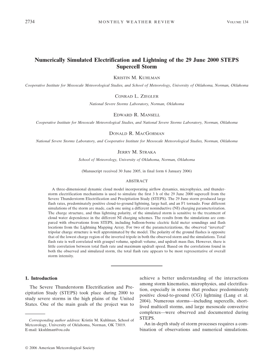一个雷暴过程的深入研究需要结合许多观测值和数值仿真值。STEPS提供了一个全面的观测数据集,用于与风暴演化的数值模拟进行详细的比较。本研究的重点是对6月29日产生F1级龙卷风、大冰雹和主要为正地闪的超级单体的数值模拟。目的是去评价仿真的电荷结构、闪电频数和极性与观测到的雷暴对比,还有去确定模型雷暴对不同起电参数设定的敏感性。正地闪的起源和与模型的整个闪电频数的关系以及雷暴特性之间值得关注。