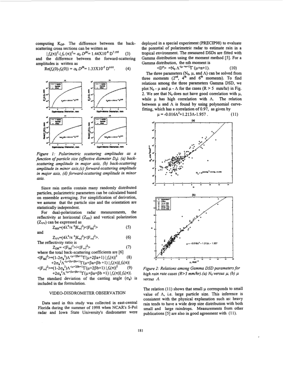 关系(11)表明小mu;对应于Ʌ的小值,即大粒径。这种推论与物理解释是一致的,例如:大雨倾向于具有大的雨滴尺寸分布,同时具有小雨滴和大雨滴。其他出版物[5]的测量结果与(1 1)也很一致。