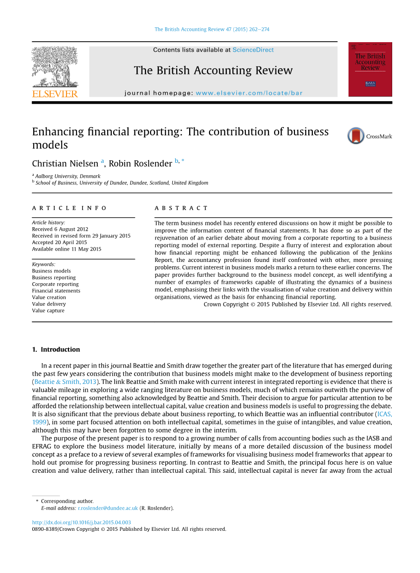 在本期杂志最近的一篇论文中,Beattie和Smith结合过去几年出现的大部分文献,分析了商业模型对商业报告的发展所可能做出的贡献(Beattie&Smith,2013)。 Beattie和Smith现阶段对综合报告的兴趣证明,大量探索有关商业模式文献具有重要的价值(其中许多文献仍不属于财务报告的范围,这也是贝蒂和史密斯所承认的)。他们决定特别关注知识资本,价值创造和商业模式之间的关系,这有助于推进辩论。同样重要的是,之前关于商业报道的辩论中,Beattie是其中一个有影响力的贡献者(ICAS,1999),在某种程度上关注知识资本(有时以无形资产为幌子)以及价值创造,尽管这可能于过渡期间在一定程度上被遗忘了。