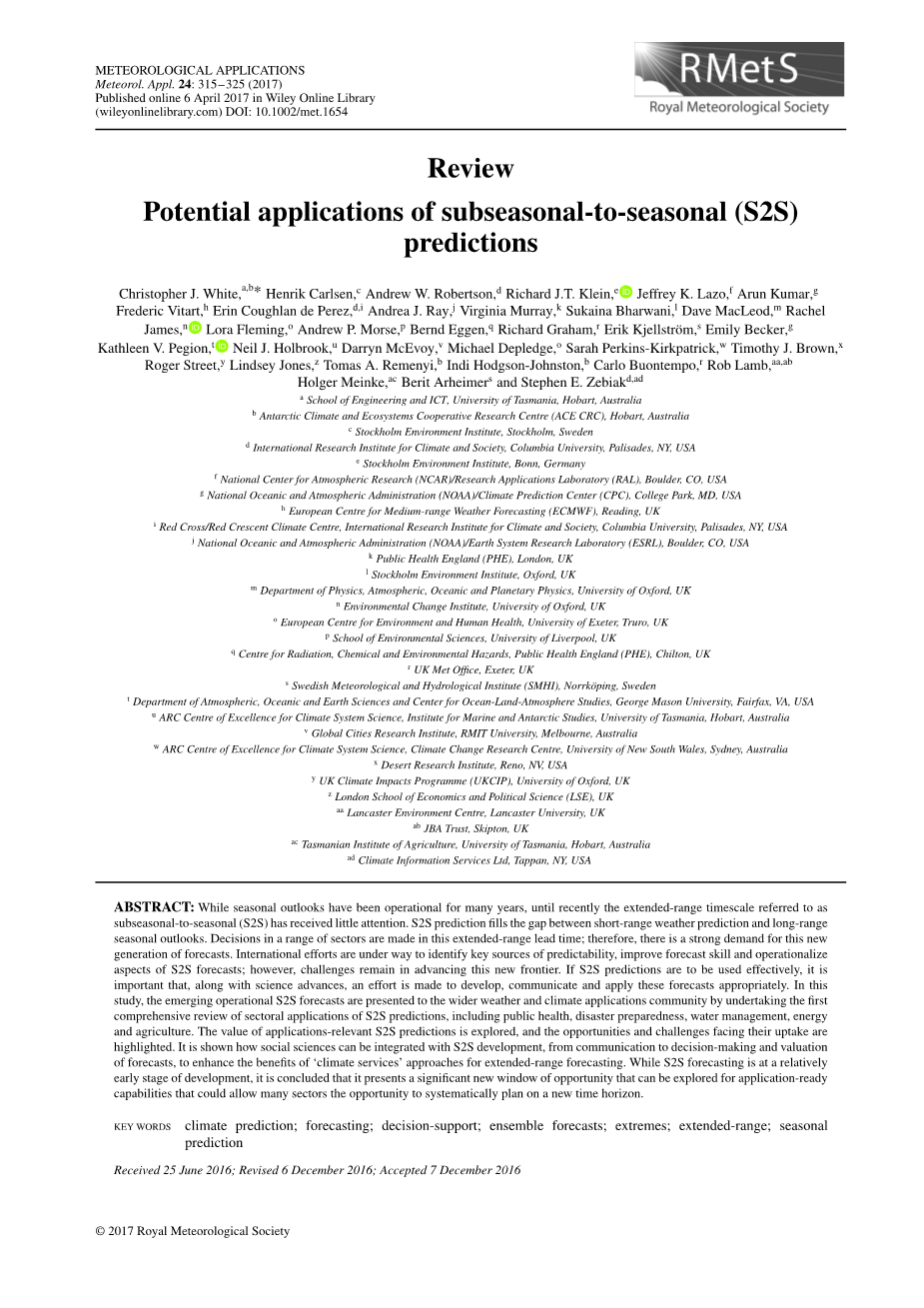 Christopher J. White,a,b* Henrik Carlsen,c Andrew W. Robertson,d Richard J.T. Klein,ereg; Jeffrey K. Lazo,f Arun Kumar,g