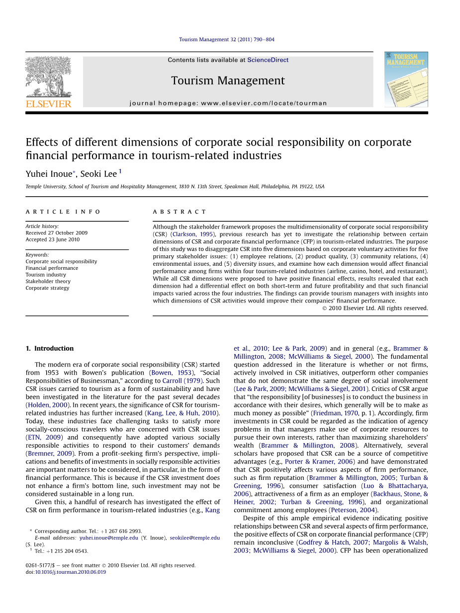 关键词:企业社会责任、财务绩效、旅游业、利益相关者理论、企业战略