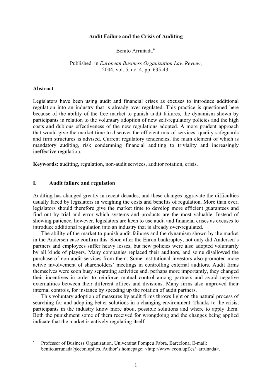 发表在欧洲商业组织法律评论, 2004年,第一卷