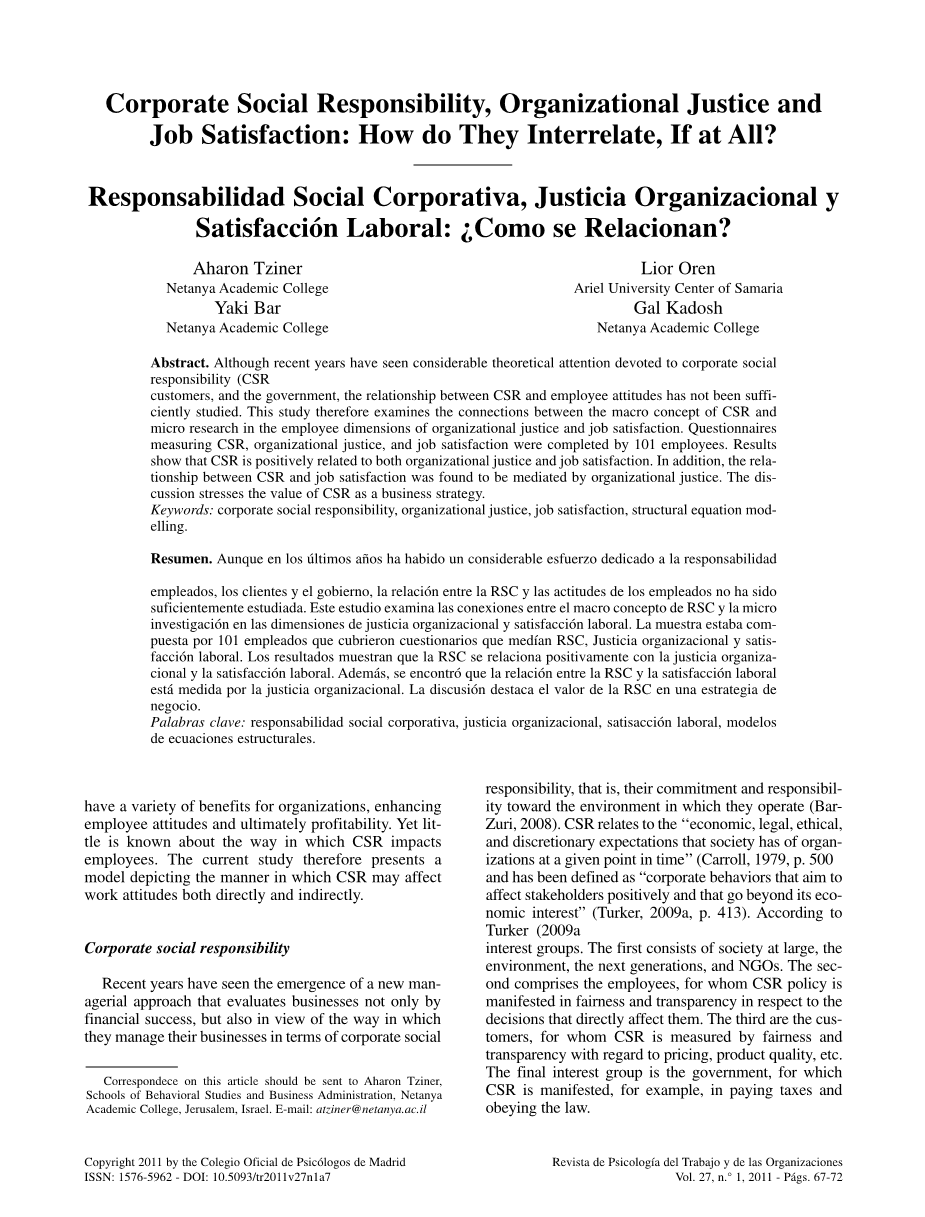 人们认为企业社会责任对组织有各种好处,提高员工的态度和最终的盈利能力。然而,人们对企业社会责任如何影响员工知之甚少。因此,本研究提出了一个模型,描述企业社会责任可能直接和间接影响工作态度的方式。