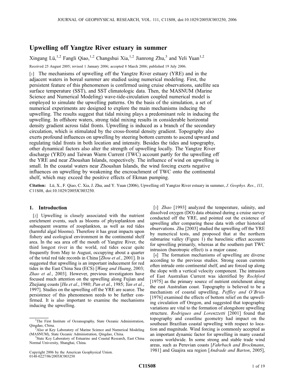 引文:Luuml;, X., F. Qiao, C. Xia, J. Zhu, and Y. Yuan (2006), 夏季长江口上升流,J。Geophys。RES。, 111, C11S08, doi:10.1029/2005JC003250.