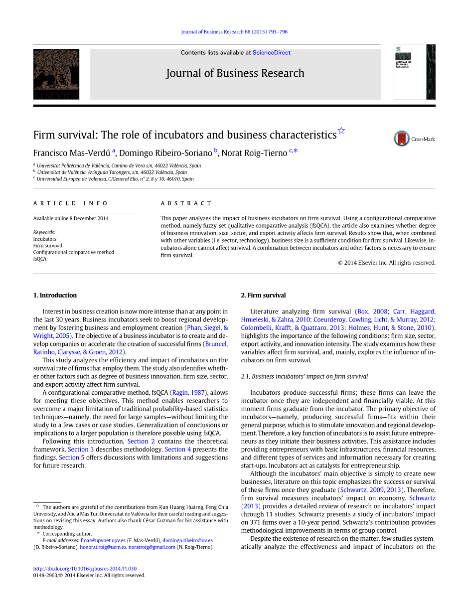 摘要:本文分析了企业孵化器对于企业生存的影响。运用模糊集定性比较分析(fsQCA)的组合比较方法,文章中也测试了业务创新度、企业规模、业务开展领域和出口活动等因素是否会影响企业的生存。结果表明,当企业规模和其他变量相结合时(例如业务活动领域、技术),构成企业生存的充分条件。也就是说,只有孵化器是不能影响企业生存的,孵化器的存在和其他因素的结合是确保企业生存的必要条件。
