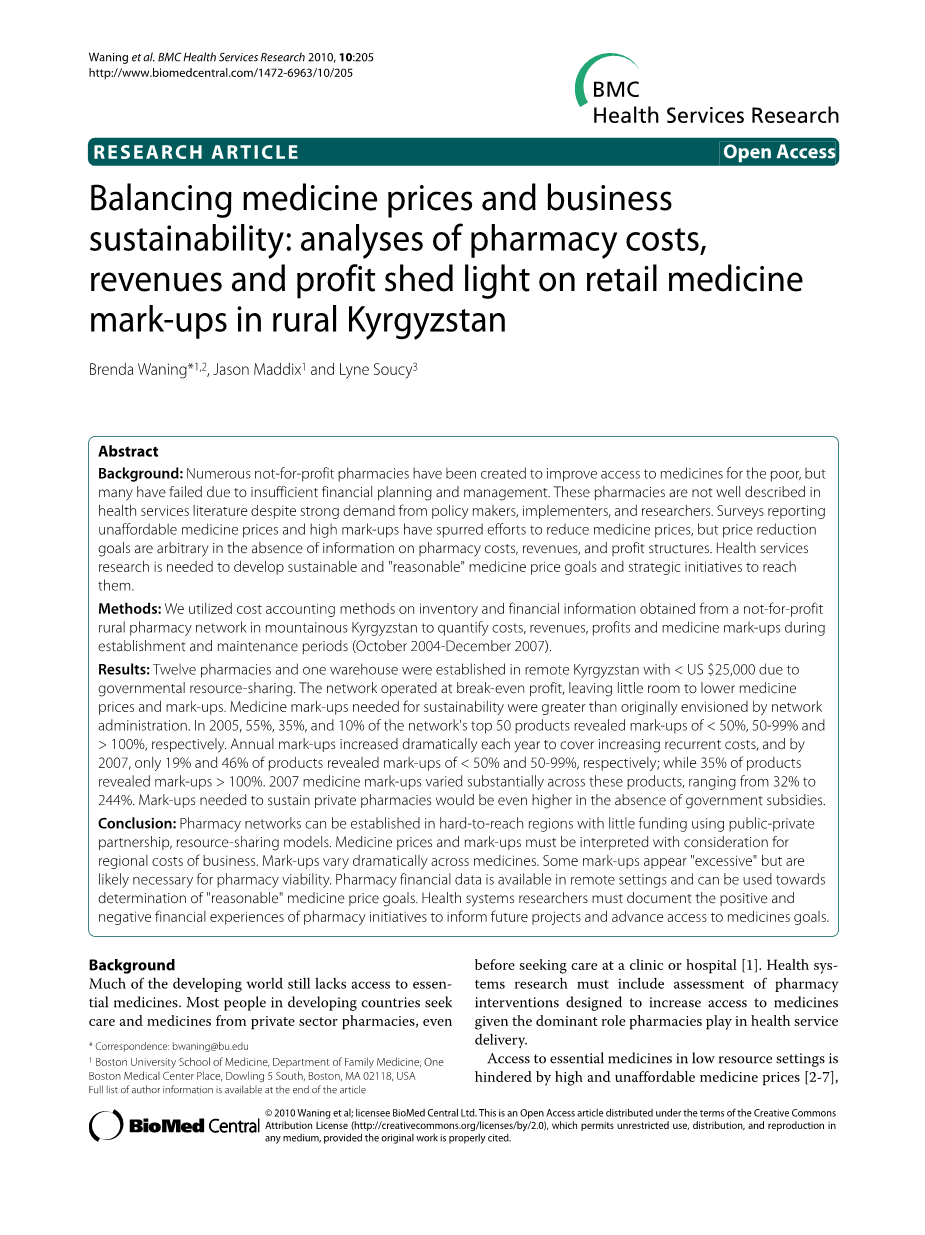 平衡药品价格和业务可持续性:对药品成本、收入和利润的分析揭示了吉尔吉斯斯坦农村地区的零售药品加价