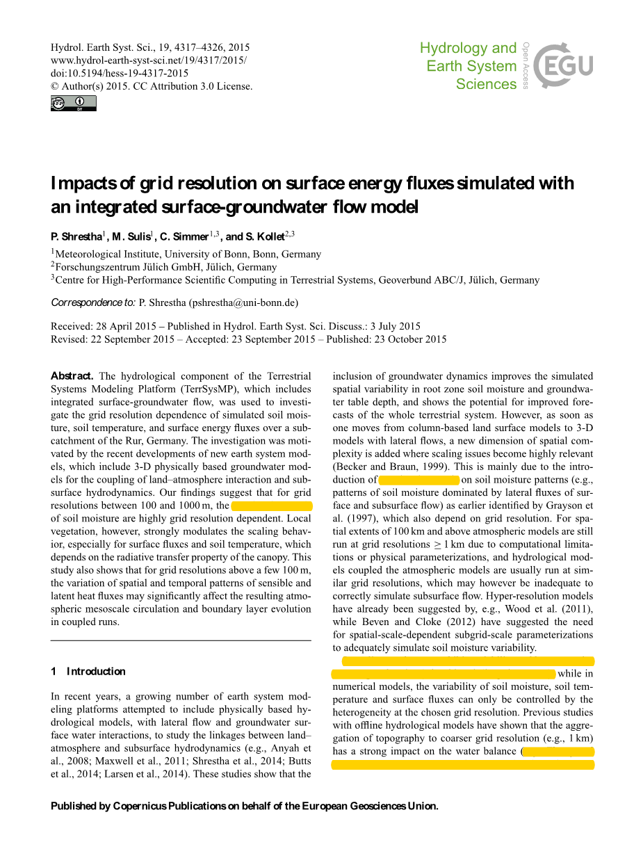 P. Shrestha1, M. Sulis1, C. Simmer1,3, and S. Kollet2,3