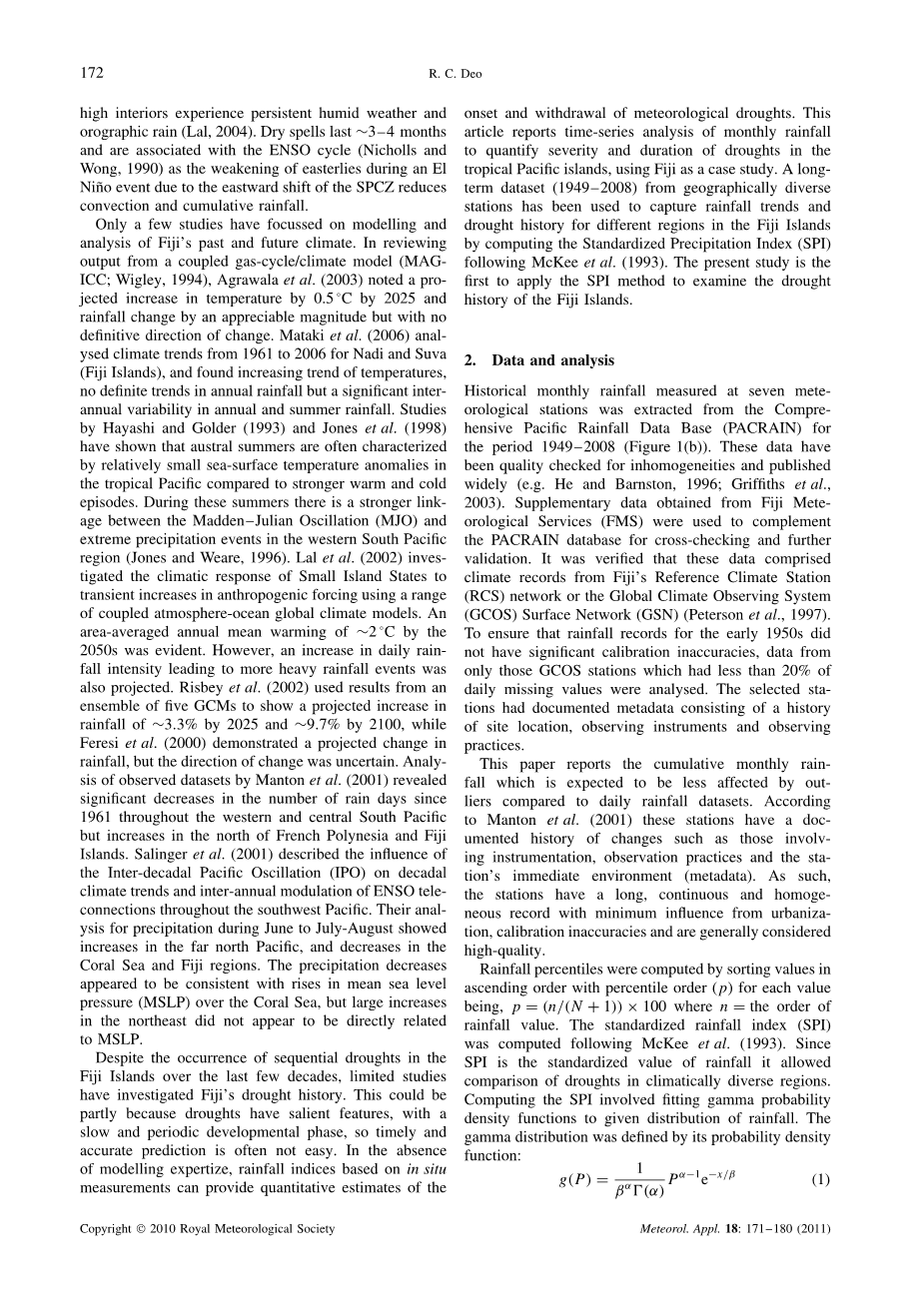 热带太平洋岛屿气象干旱:斐济观测降雨时间序列分析Ravinesh C. Deo*
