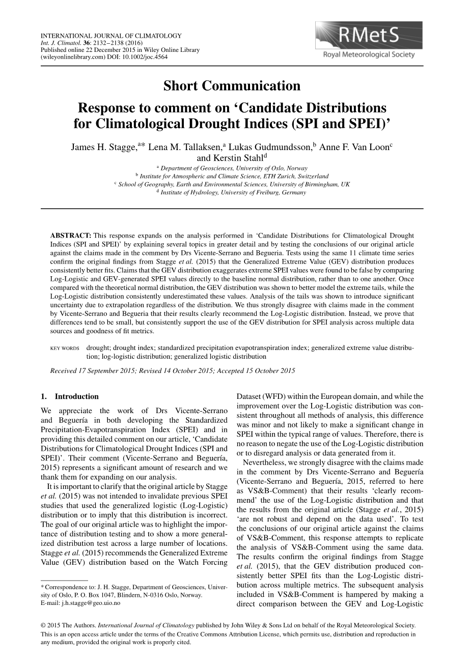 James H. Stagge1,Lena M. Tallaksen1,Lukas Gudmundsson2,Anne F. Van Loonc3