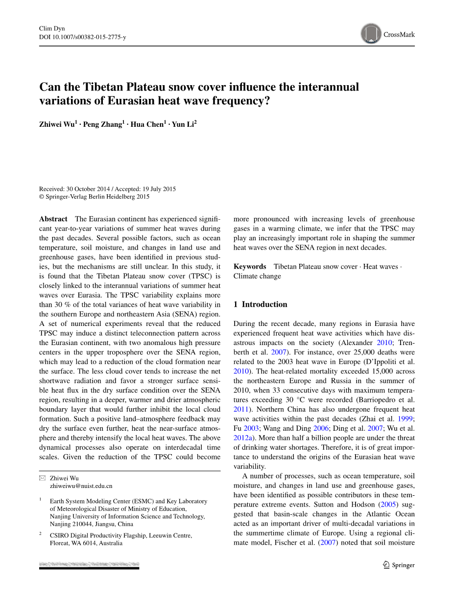 Zhiwei Wu · Peng Zhang · Hua Chen · Yun Li