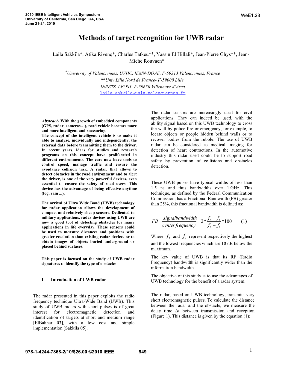 [Sakkila 08] L. Sakkila laquo; UWB Radar system for road anti-collision applicationraquo;3rd InternationalConference on Information amp; Communication Technologies: from Theory to Applications,ICTTArsquo;08, avril 2008,