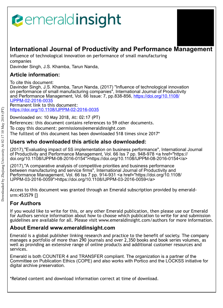 技术创新对小型制造企业绩效的影响外文翻译资料