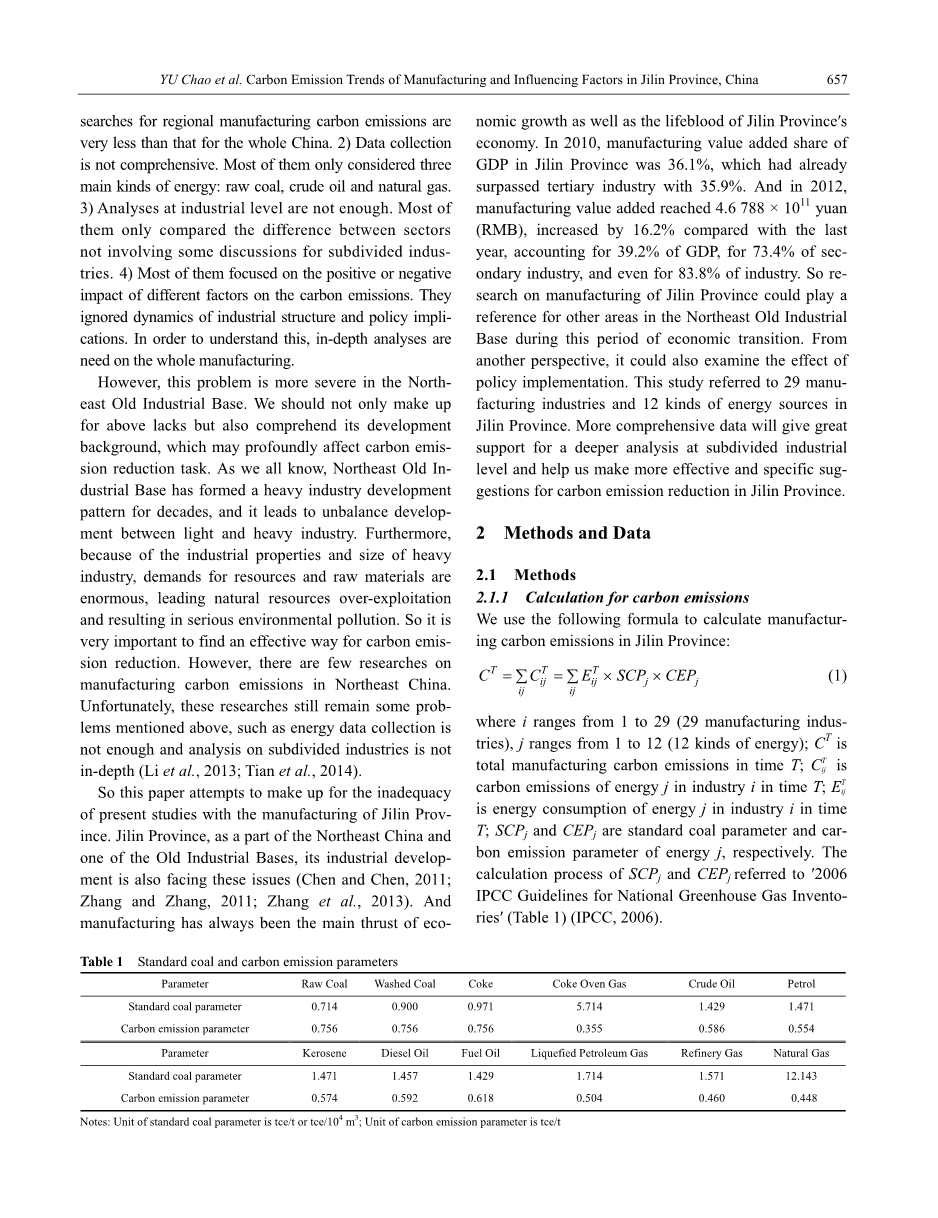 因此,本文试图弥补吉林省制造业目前研究的不足。吉林省作为东北地区和老工业基地之一,其产业发展也面临着这些问题(陈和陈,2011;张和张,2011;张等人,2013)。制造业一直是吉林省经济增长的主要推动力,也是吉林省经济的命脉。 2010年,吉林省制造业增加值占GDP的比重为36.1%,超过第三产业35.9%。 2012年,制造业增加值4.6 788times;元(人民币),比上年增长16.2%,占国内生产总值的39.2%,占第二产业的73.4%,甚至达到83.8%。因此,在这个经济转型时期,对吉林省制造业的研究可以为东北老工业基地其他地区的发展提供参考。从另一个角度来看,它也可以检查政策实施的效果。本研究涉及吉林省29个制造业和12种能源。更全面的数据将为细分产业层面的深入分析提供有力支持,帮助我们为吉林省碳减排提出更加有效和具体的建议。