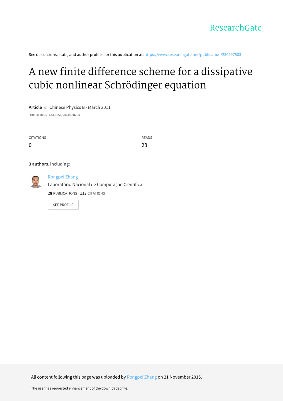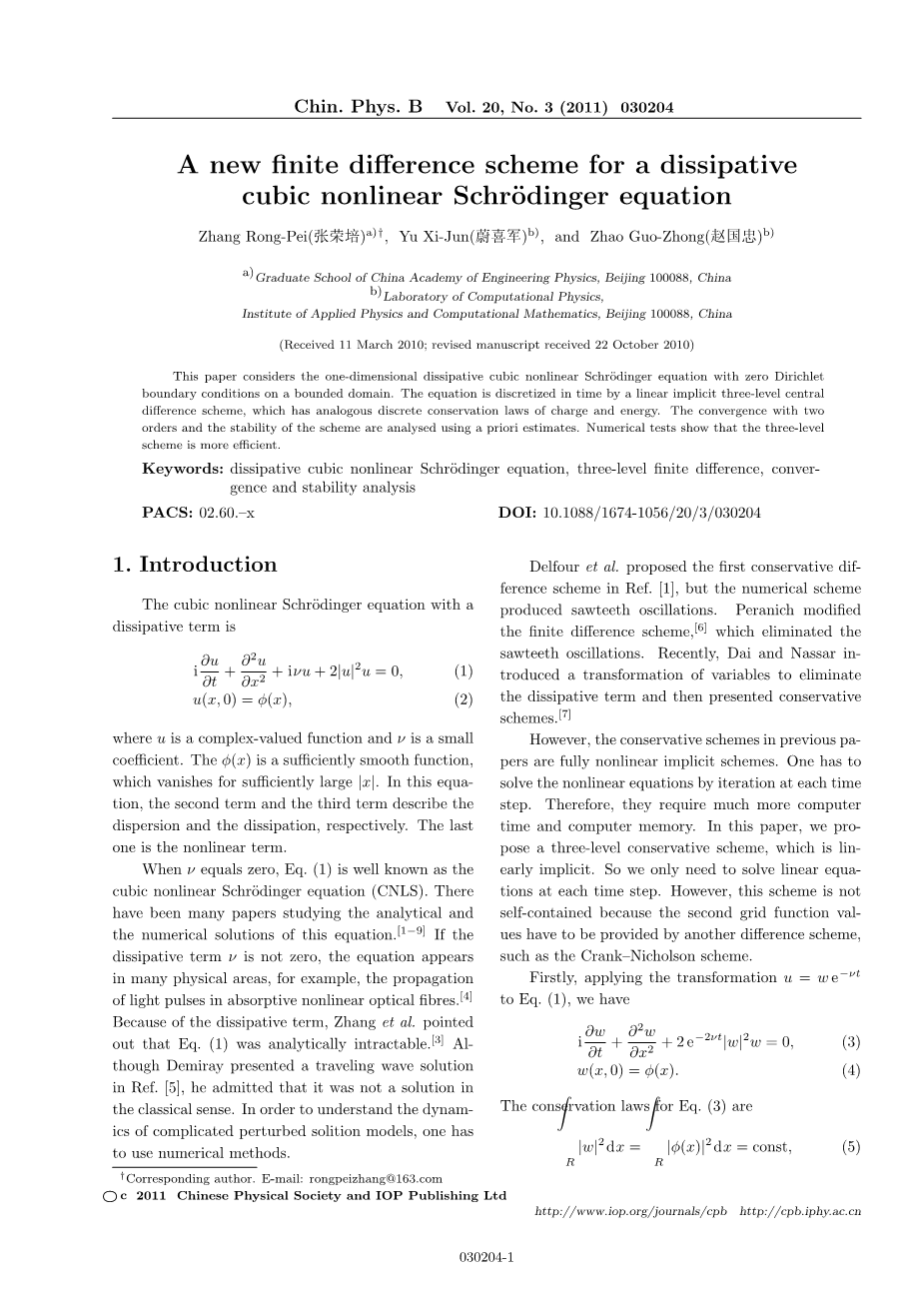 关键词:耗散立方非线性薛定谔方程;三级有限差分;conver-gence;稳定性分析