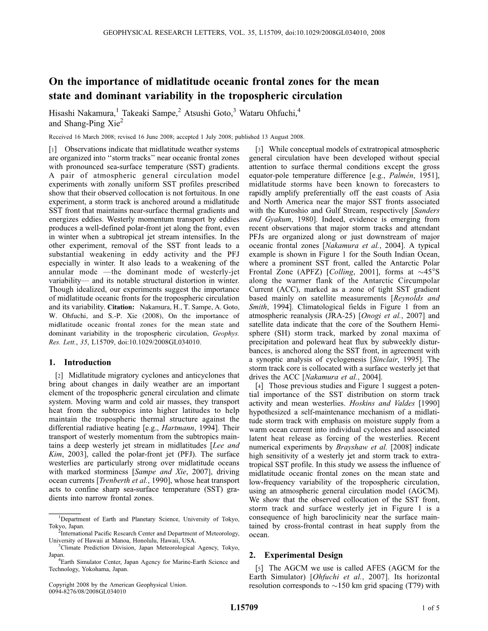 作者:Hisashi Nakamura,1 Takeaki Sampe,2 Atsushi Goto,3 Wataru Ohfuchi,4