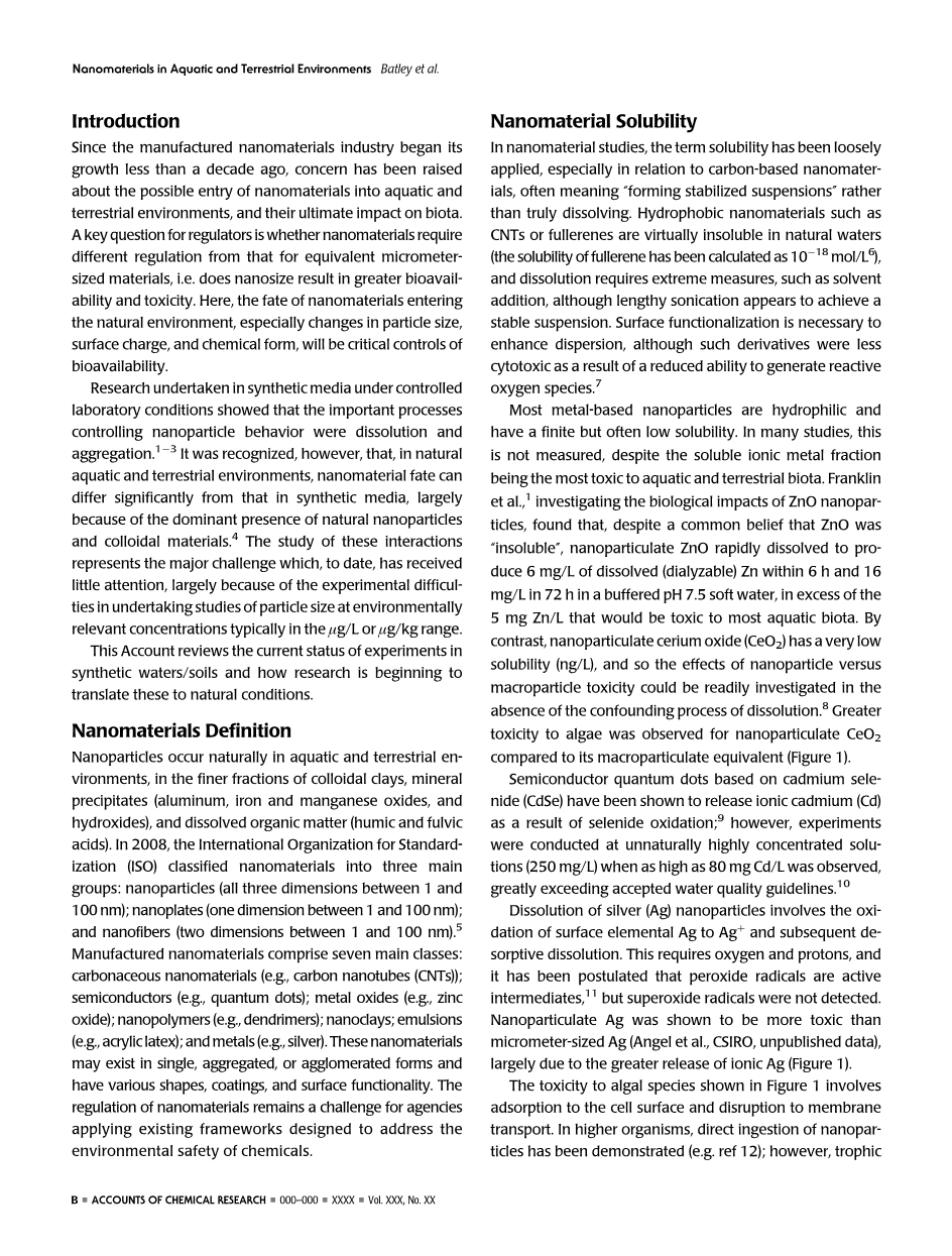 由于制造的纳米材料行业在十年前开始不断增长,人们对纳米材料进入水生和陆地环境以及对生物群的最终影响可能引起关注。监管者的一个关键问题是纳米材料是否需要与等效微米尺寸材料的调节不同,即纳米尺度是否导致更大的生物利用度和毒性。在这里,进入自然环境的纳米材料的命运,特别是粒度,表面电荷和化学形式的变化,将是生物利用度的关键控制。