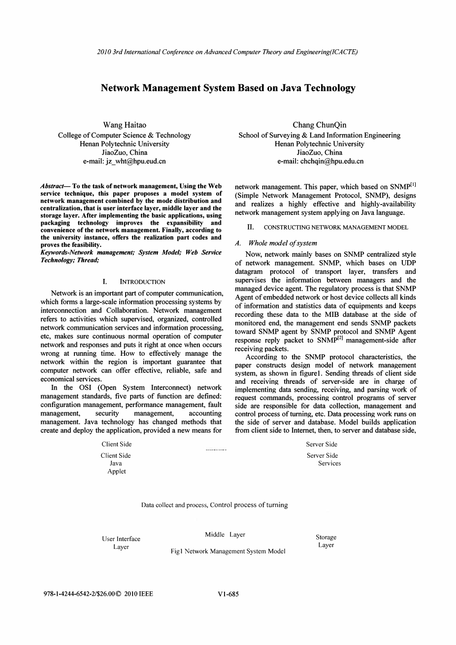关键词 - 网络管理; 系统模型; Web服务技术; 线;