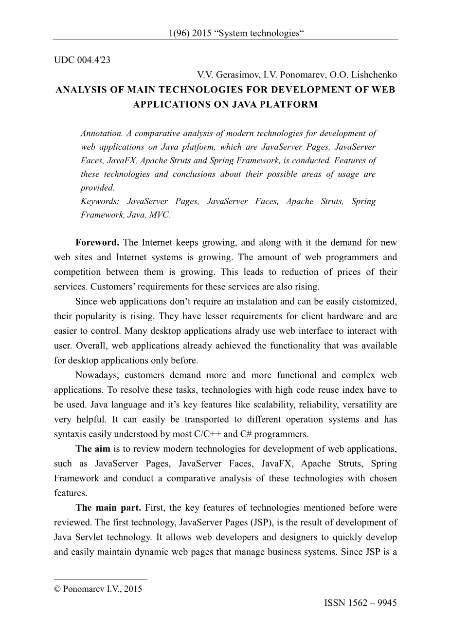 V.V. Gerasimov, I.V. Ponomarev, О.О. Lishchenko