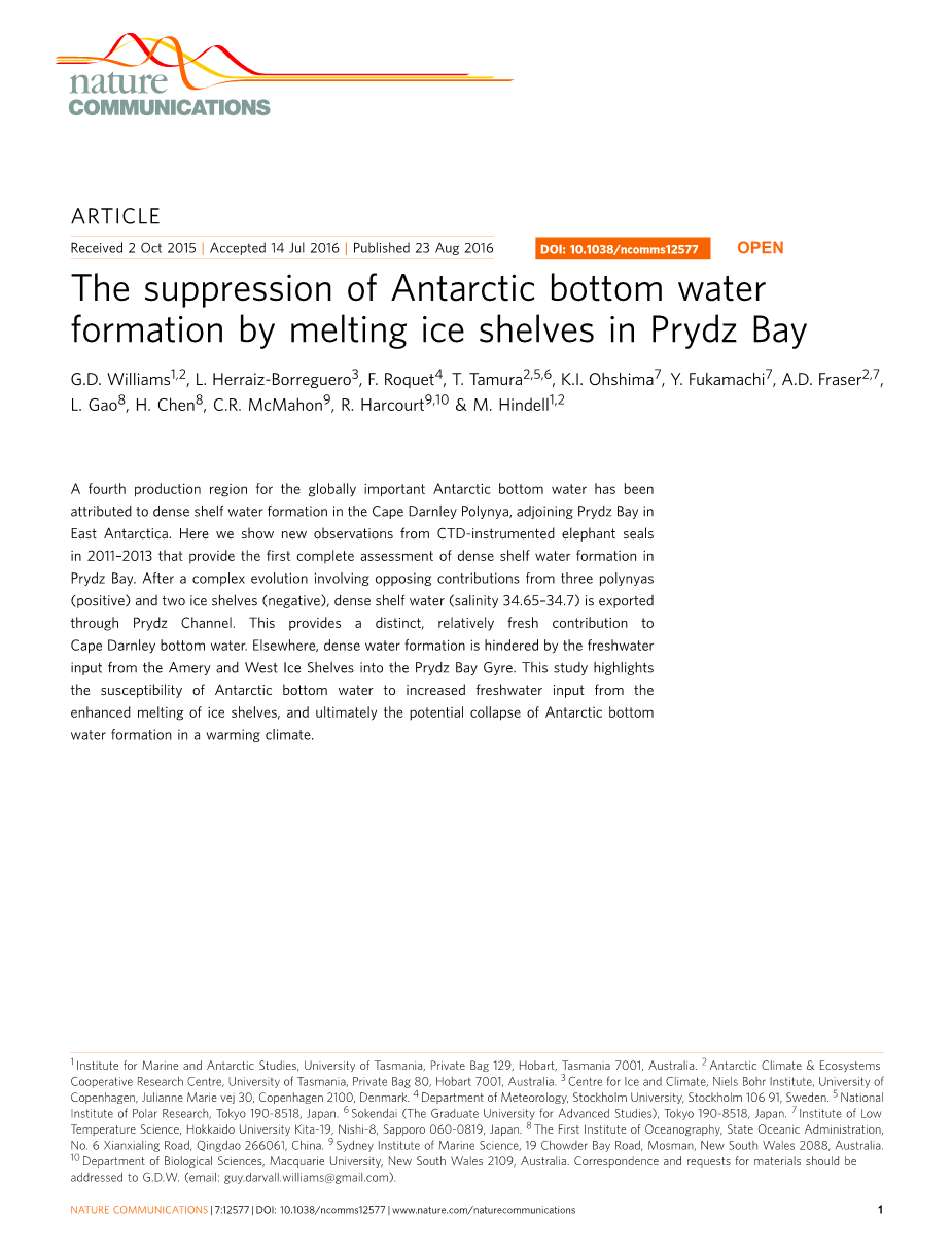 作者:G.D. Williams, L. Herraiz-Borreguero, F. Roquet, T. Tamura, K.I. Ohshima, Y. Fukamachi, A.D. Fraser, L. Gao, H. Chen, C.R. McMahon, R. Harcourt amp; M. Hindell.