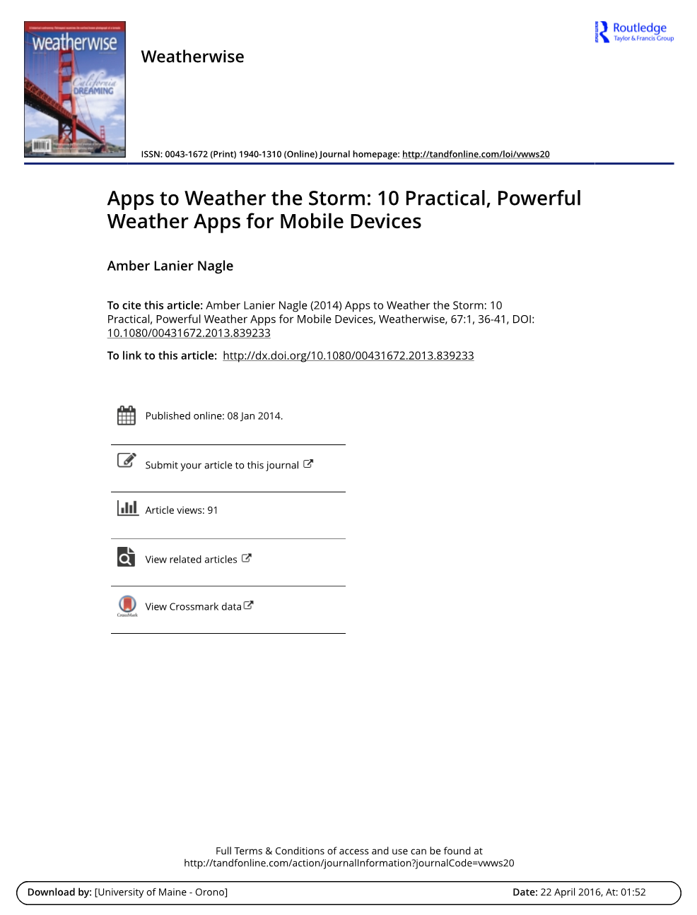 引用这篇文章:琥珀拉尼尔内格尔(2014)渡过恶劣气候的应用:10实用的、功能强大的天气应用程序移动设备,Weatherwise,67:1,36-41,DOI:10.1080/00431672.2013.839233