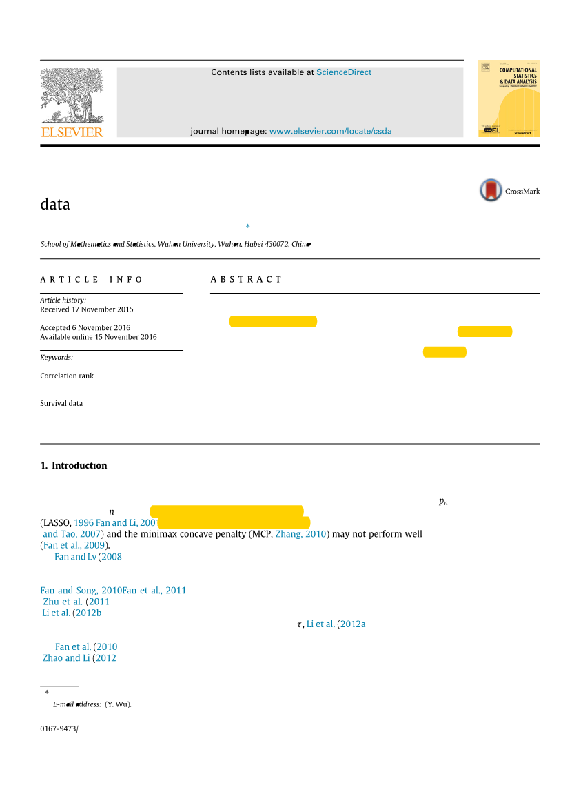针对删失超高维数据,范及其团队(2010)通过研究排名变量各自单变量的偏对数似然函数找到了适合Cox比例风险模型的SIS模型。基于Cox模型的标准边缘最大偏似然估计,赵和李(2012)提出了一种新的筛选法,同时给出了关于确定独立筛选属性的理论证明。为了放宽Cox模型的假设,Gorst-Rasmussen and Scheike (2013)提出了用于一类单指标风险率模型的筛选方法。基于肯德尔系数以及删失逆概率权重,宋及其团队(2014)提出了一个删失等级独立筛查模型用来展示强潜在极端值,同时这个模型可以用于一大类生存模型。吴和尹(2015)开发了一个用于识别响应条件分位数的协变量的筛选模型。最近,吴和朱(新闻报道)通过合并删失数据的逆概率,提出了一个适用于SIRS模型的检查版本。