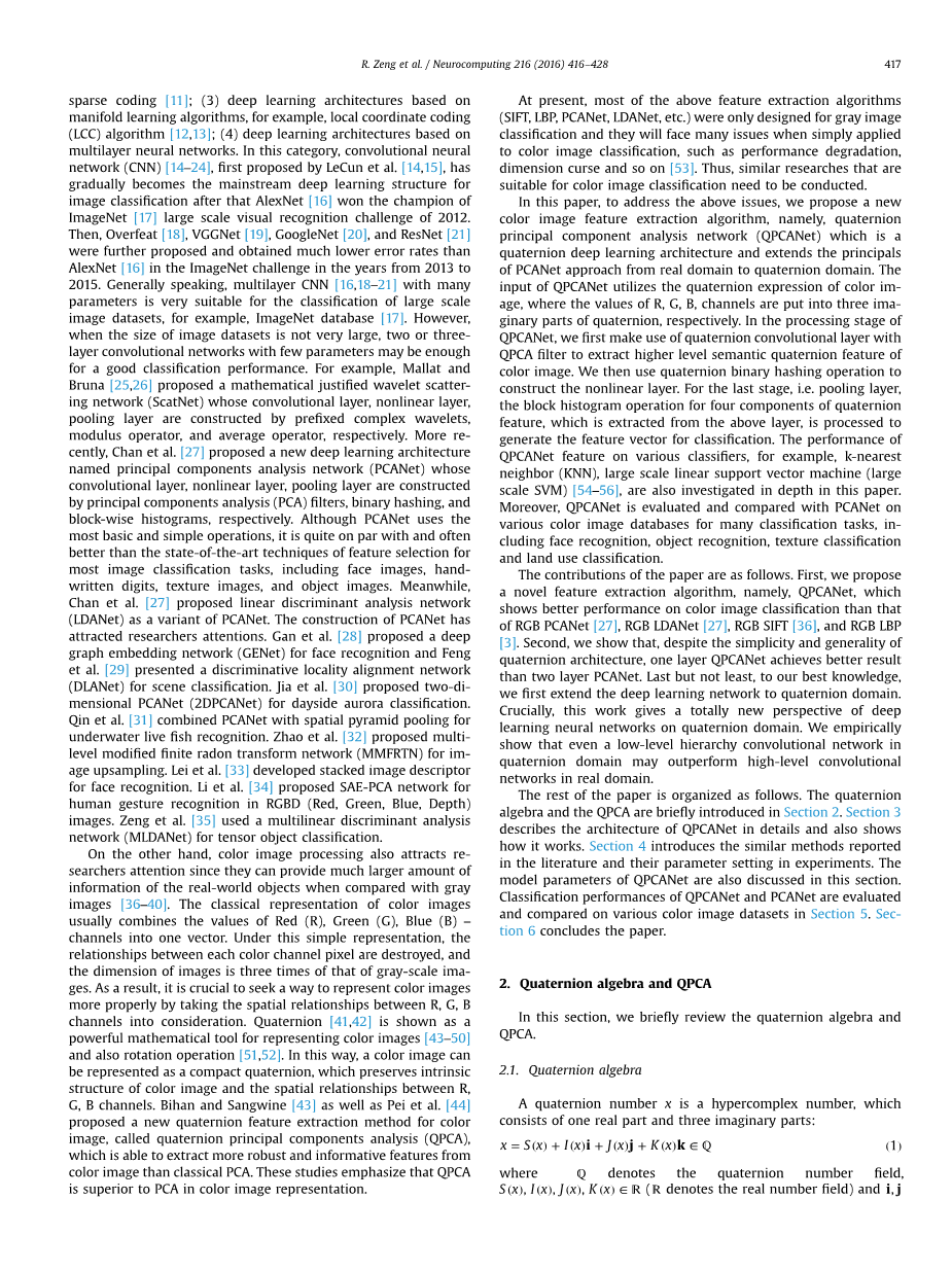 深入学习、卷积神经网络、四元数、QPCA网、PCA网络、彩色图像分类