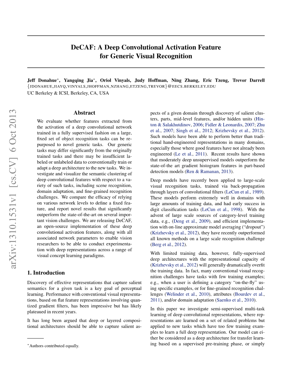 作者:Jeff Donahue lowast; , Yangqing Jia lowast; , Oriol Vinyals, Judy Hoffman, Ning Zhang, Eric Tzeng, Trevor Darrell