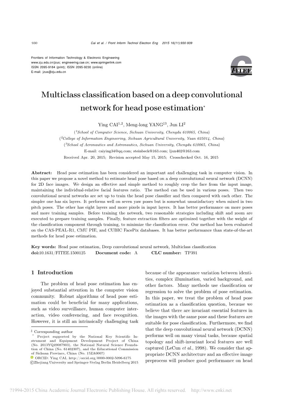 Ying CAI1,2, Meng-long YANGDagger;3, Jun LI2
