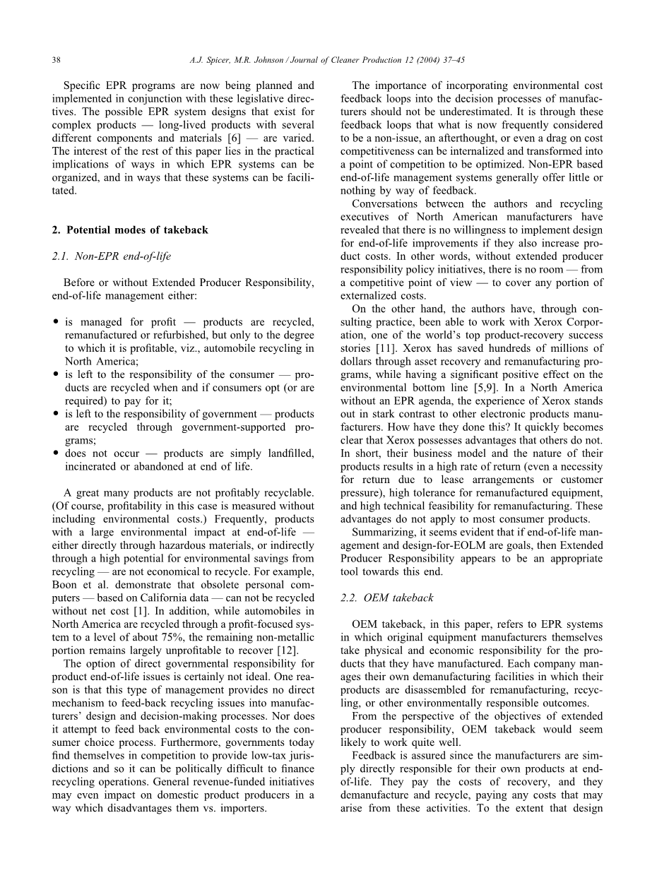 在这里提出的问题,扩大生产者责任的集中模型只是关注。它是集中系统可能实现反馈交流信息和闭环回收的经济指标。然而。它显然也可以在这些标准上比OEM做的更好。此外,市场驱动结构的第三方回收也有可能做的更好,这将在本文其余部分中阐述。
