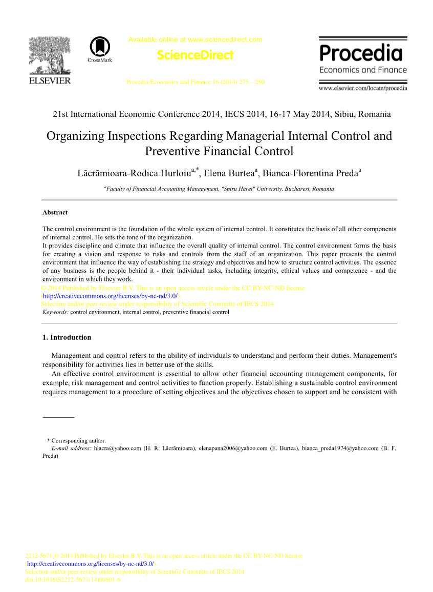 Organizing Inspections Regarding Managerial Internal Control and Preventive Financial Control