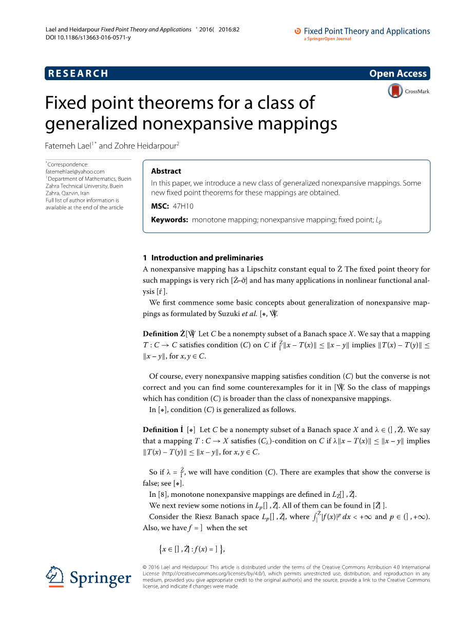 9. Khamsi, MA, Khan, AR: On monotone nonexpansive mappings in L ([0,1]). Fixed Point Theory Appl. 2015, Article ID194 (2015). doi:10.1186/s13663-015-0346-x