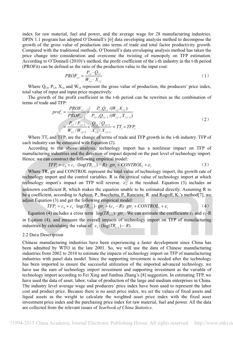 在本文中,我们将采用面板数据模型,根据28个中国制造业的数据,分析技术进口对TFP的影响。