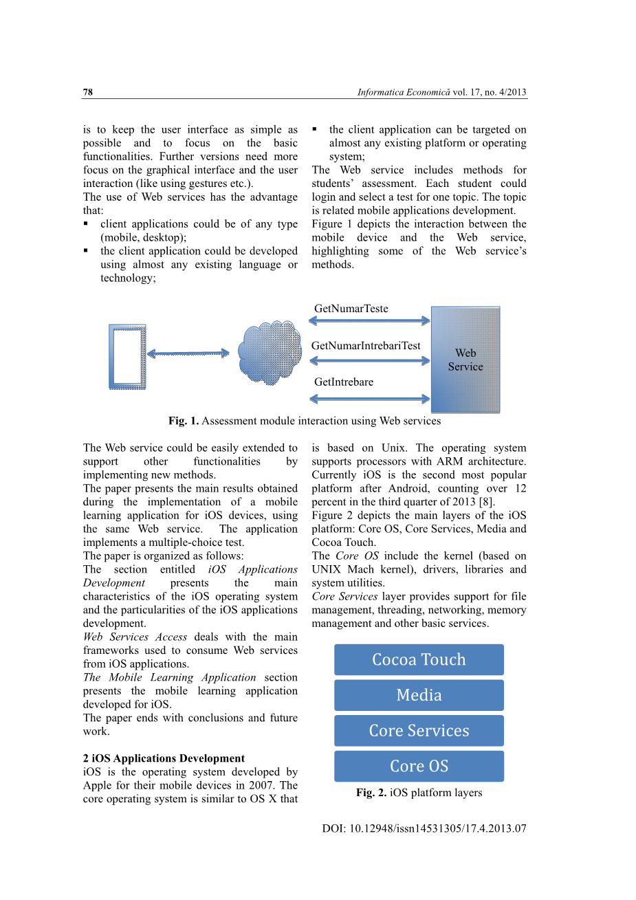 在这个领域,我们使用一个研究项目的框架开发出了很多移动学习应用的原型。在这方面,我们开发了一个能为学生评定提供方法并基于SOAP网络服务的应用。近期主要的工作是安卓平台移动学习应用的开发。结果将在后面呈现[4]。