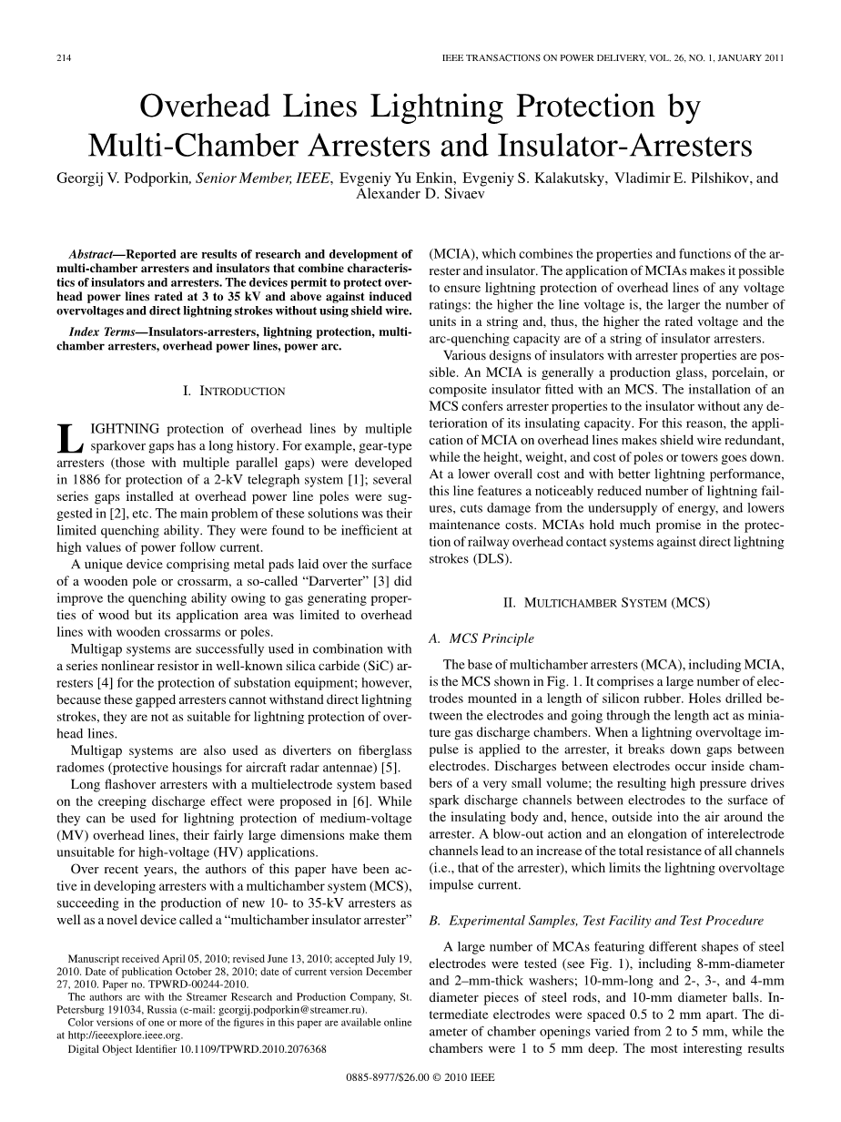 关键词:绝缘子避雷器,防雷,多重避雷器,架空电力线,电等。