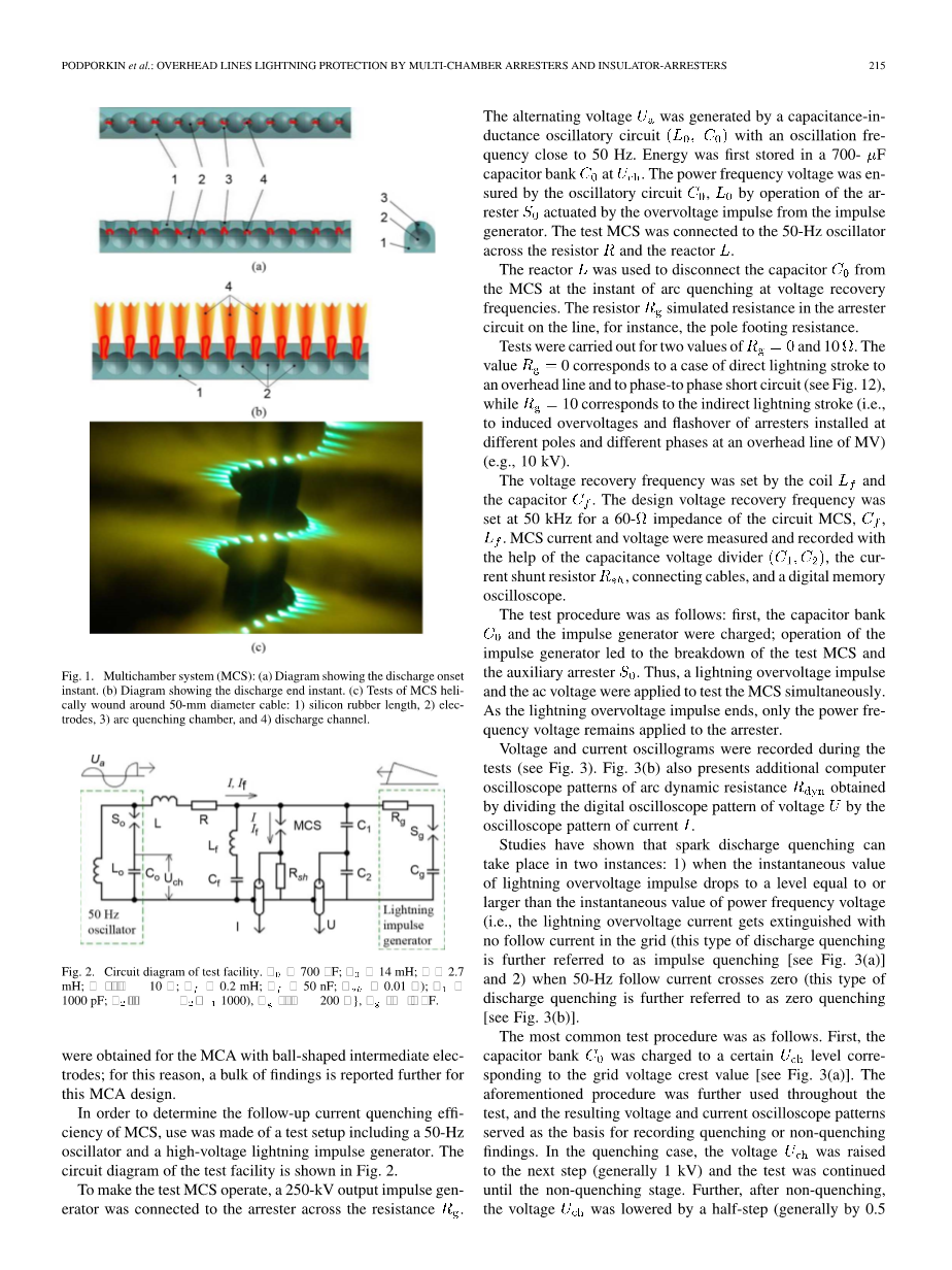 Multigap系统成功地与已知的用于保护变电站设备的二氧化碳碳化硅(SiC)避雷器[4]中的串联非线性电阻结合使用;然而,由于这些间隙避雷器不能承受直接的雷击,所以它们不适用于架空线的防雷。