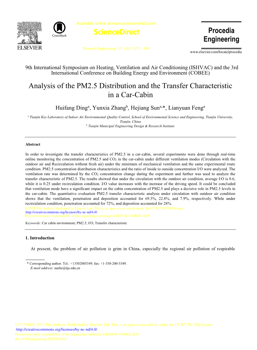第九届供暖,通风和空调国际研讨会(ISHVAC)和第三届建筑能源与环境国际会议(COBEE)
