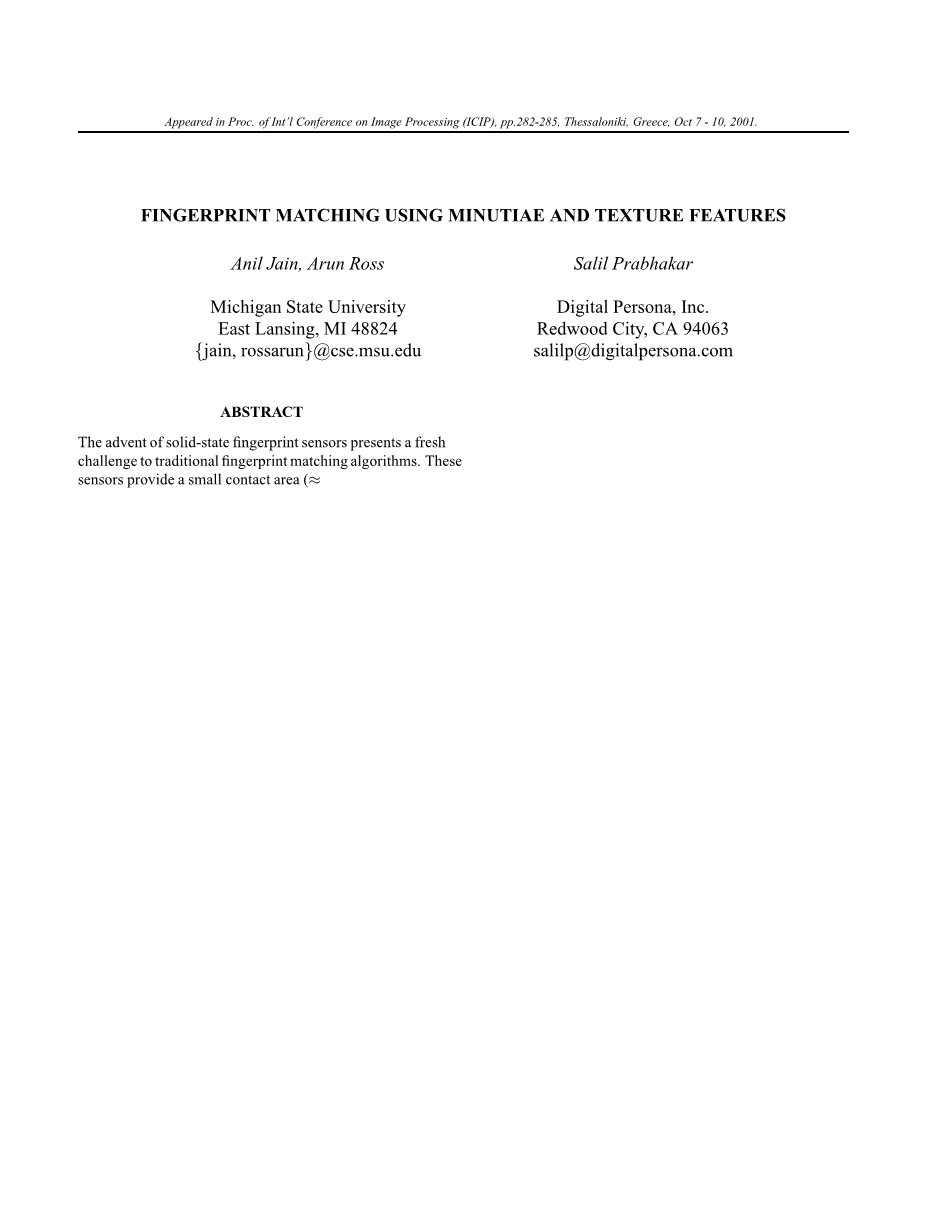 {耆那教,rossarun}@cse.msu.edu salilp@digitalpersona.com